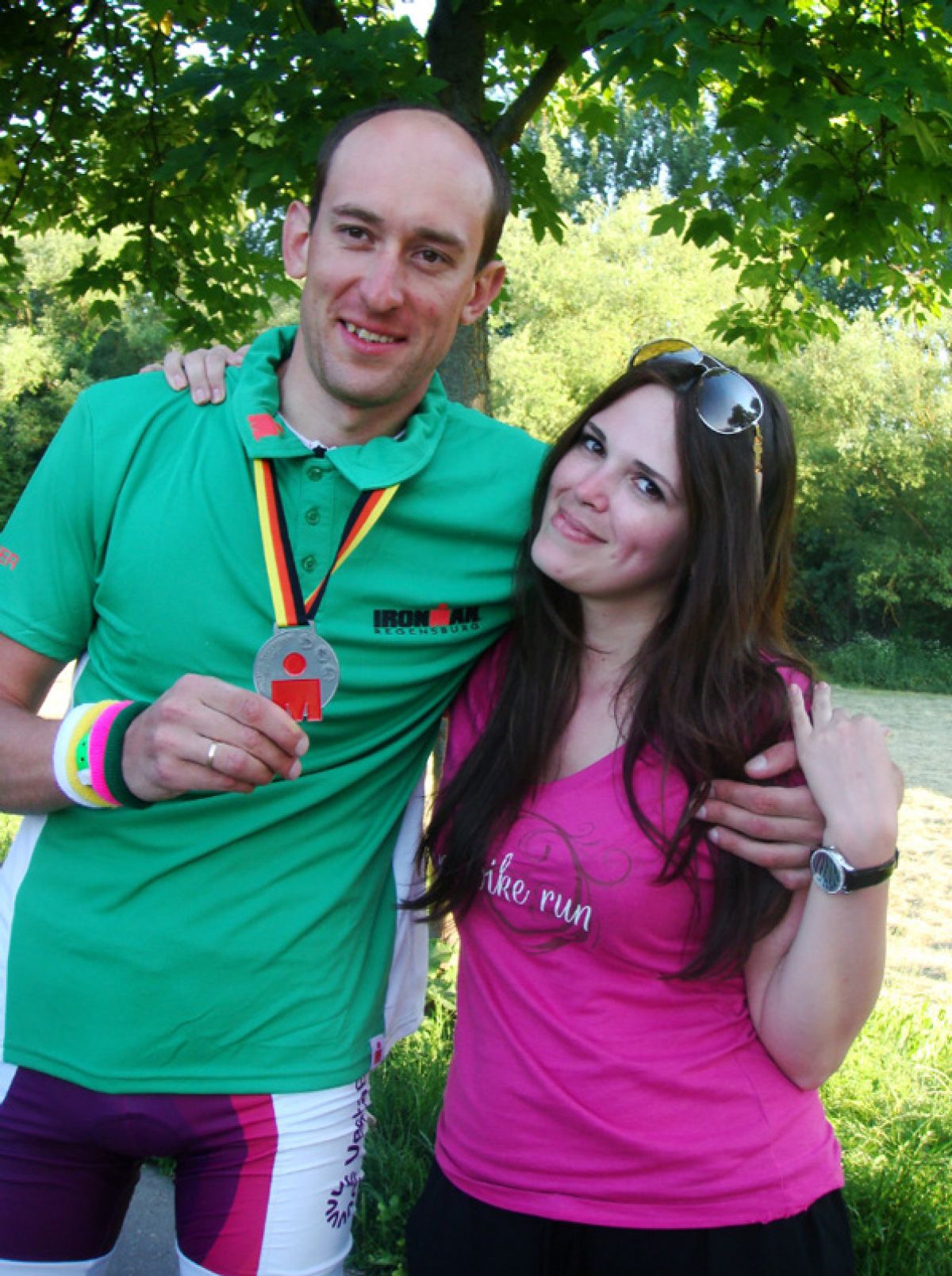 - Моя любимая супруга Майя (на фото). Она удивительная женщина! Так совпало: когда приступил к тренировкам, жена забеременела. Я разрывался между работой и спортзалом, можно сказать, дома практически не бывал. Она не обижалась, не устраивала истерик - напротив, говорила, что любит, что верит в меня, что всё получится. Почти сразу после родов приехала с сыном Никитой в Германию - это была огромная поддержка. Перед стартом провела со мной целый день, фотографировала, подбадривала. А после гонки… Майя даже вещи мои несла и велосипед катила, я был просто без сил. Так что ещё неизвестно, смог бы я пройти триатлон, если бы не поддержка жены. Ну и, конечно, сынок помогал. Когда совсем тяжело было, думал о нашем малыше, и сразу становилось легче.