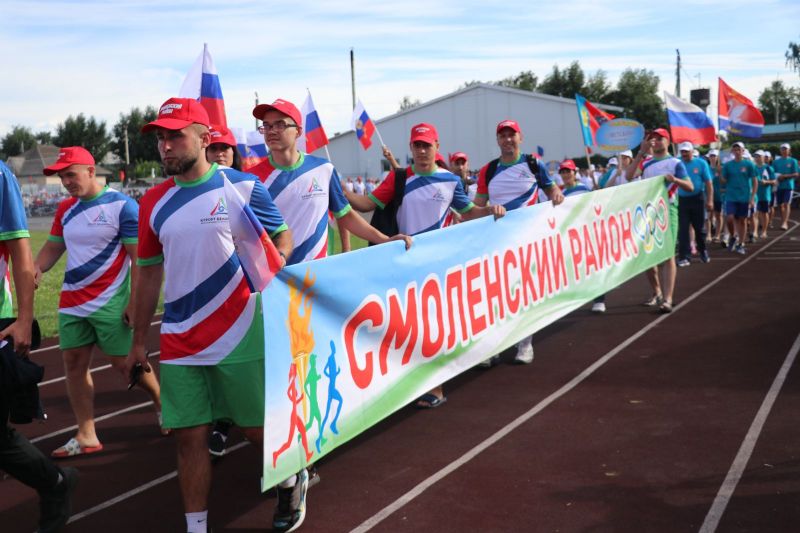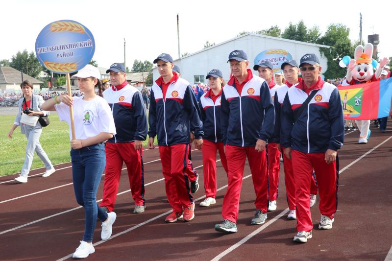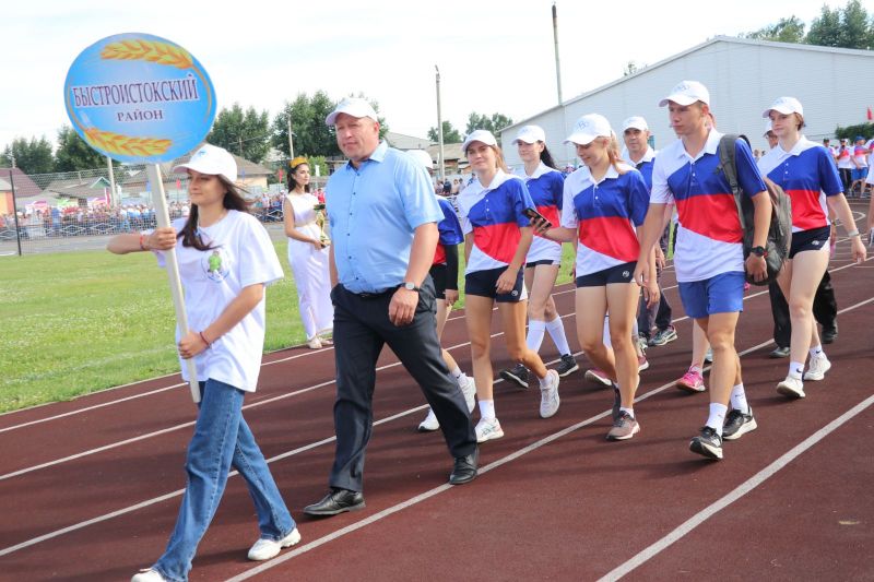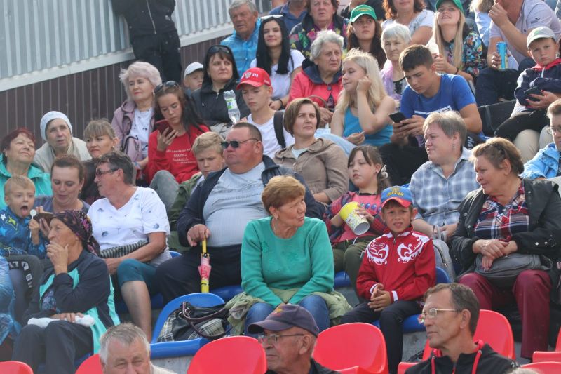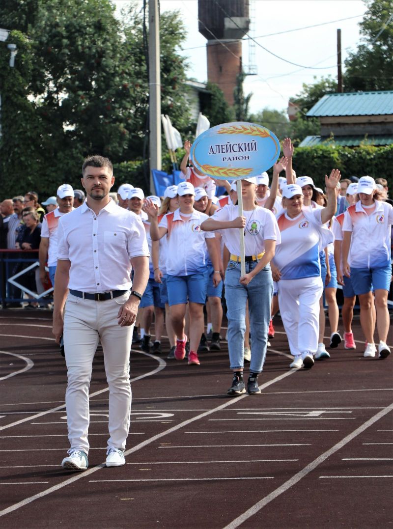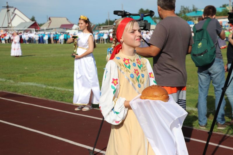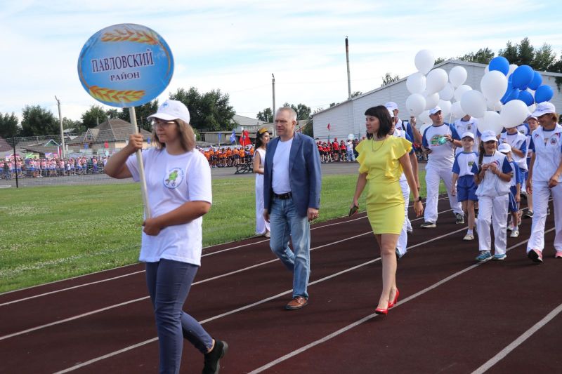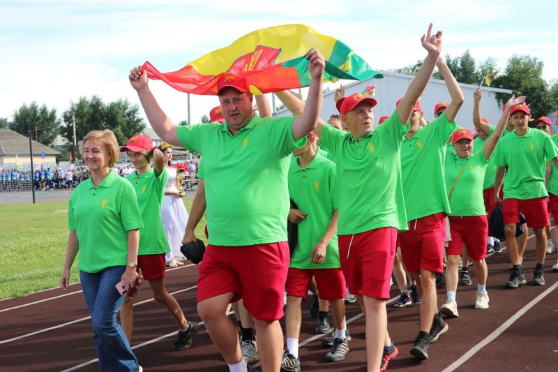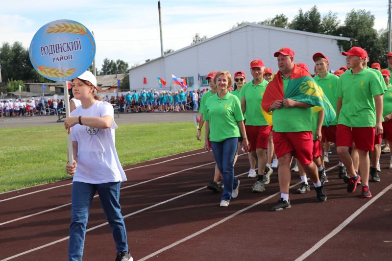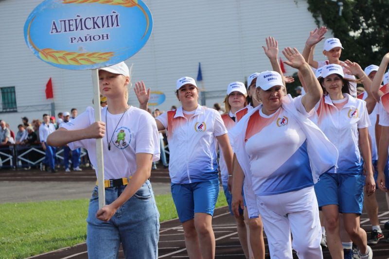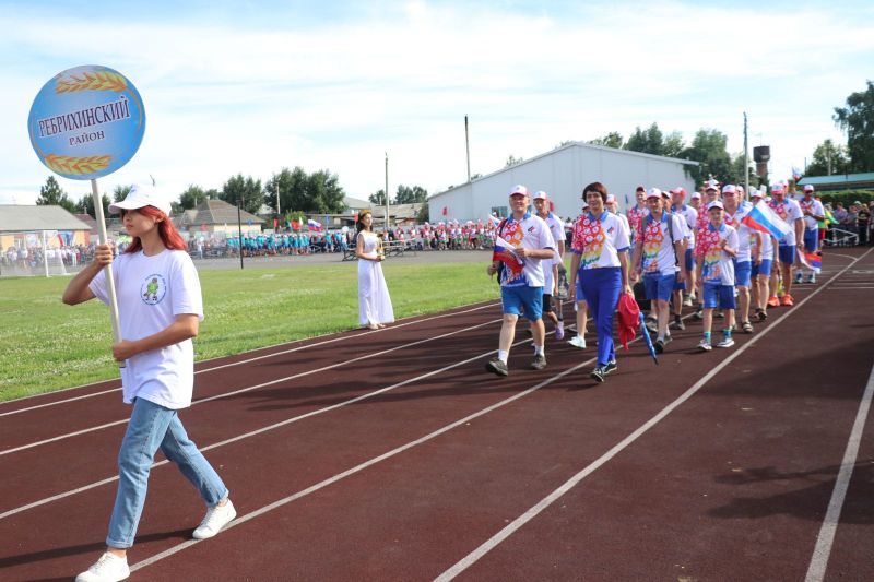 Полный стадион бурно приветствал участников соревнований на параде спортивных делегаций. На XLII летнюю олимпиаду сельских спортсменов в Мамонтово прибыло более тысячи спортсменов из 52 районов края. Почти все они возглавлялись рукводителями муниципалитетов.