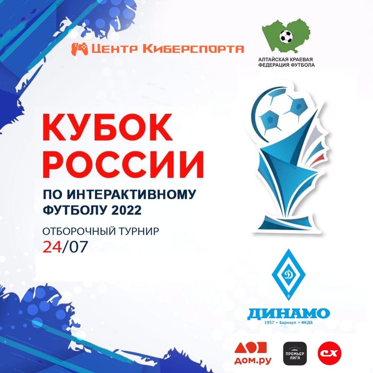 Алтайский краевая федерация футбола (www.akff.info), совместно с Центром Киберспорта и ФК «Динамо-Барнаул» проведёт отборочный этап на кубок России 2022 по интерактивному футболу!