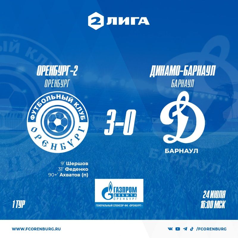 На официальном сайте Футбольной национальной лиги игра первого тура между дублерами «Оренбурга» и барнаульским «Динамо» значилась как матч-открытие, хотя формально по времени начала она не была первой: фактически сезон во Второй лиге, как вновь теперь называют турнир чемпионата России среди команд третьего эшелона, стартовал в Новосибирске, где местный клуб сыграл довольно скучную безголевую ничью с «Челябинском».