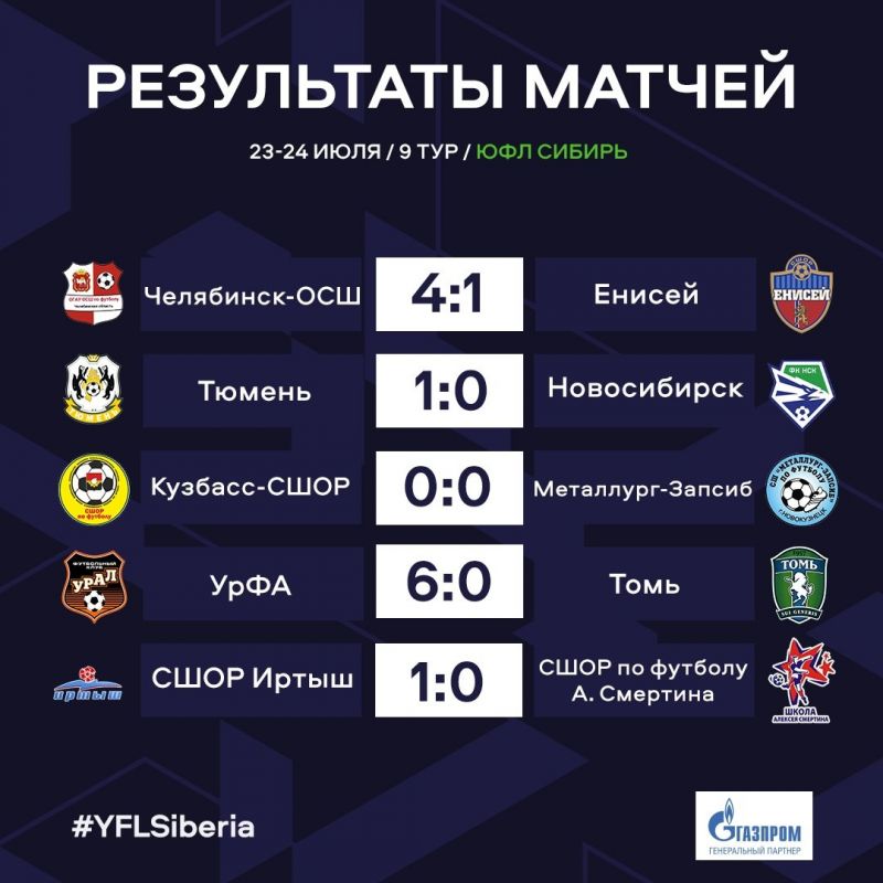 24 июля матчами девятого тура завершился первый круг первого сезона первенства России по футболу в проекте РФС ЮФЛ Сибирь.