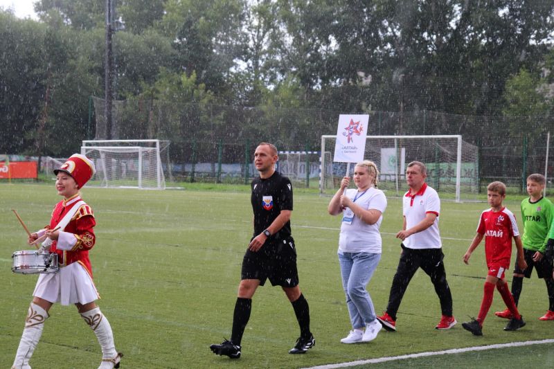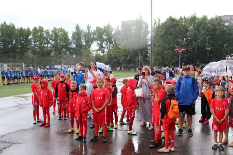 Открытие турнира на трибуне стадиона собрало несколько сотен любителей спорта, родителей юных футболистов, специалистов и тренеров. И даже начавшийся было ливень не помешал церемонии.