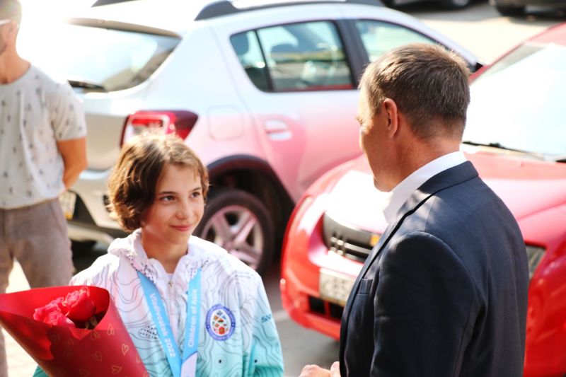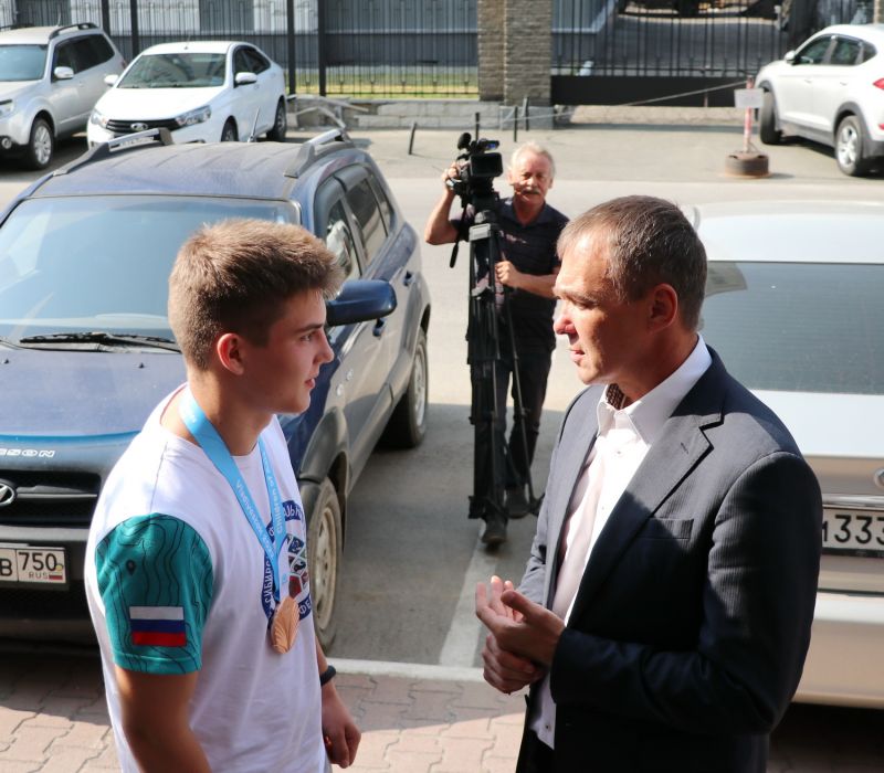 Автобус с юными атлетами прибыл вечером 8 августа к зданию министерства спорта Алтайского края. Заместитель регионального министра Максим Рябцев встретился с героями Игр и поблагодарил их за отличное выступление во Владивостоке.