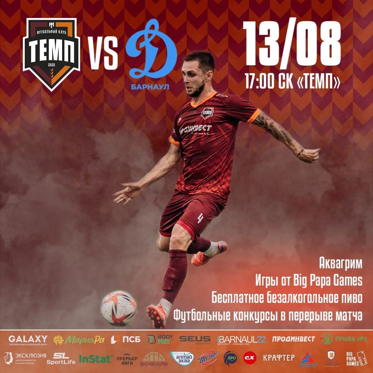 В Барнауле состоится столичное дерби: на поле футбольного манежа СК «Темп» одноименная команда принимает молодежный состав «Динамо».