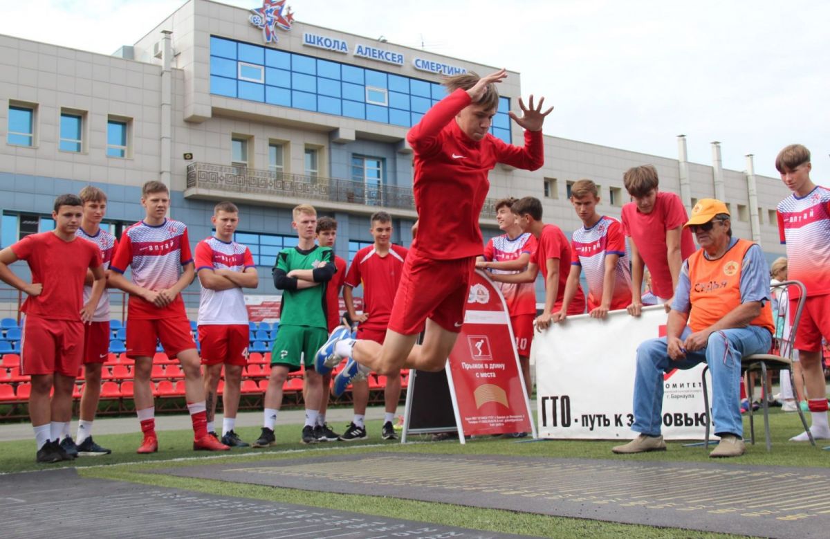 На церемонии открытия футболистов школы Смертина приветствовали заместитель министра спорта региона Максим Рябцев и директор Центра тестирования ГТО Барнаула Андрей Цепенок. После того, как замдиректора ЦТ ВФСК «ГТО Александр Шамехин сделал пояснения по регламенту проведения испытаний ГТО, футболисты-„смертинцы“ разошлись по „базам“ и приступили к сдаче. Несмотря на большое количество участников, дело шло без задержек, благо большая территория стадиона позволяла разместить единовременно много площадок для сдачи нормативов гимнастического блока.