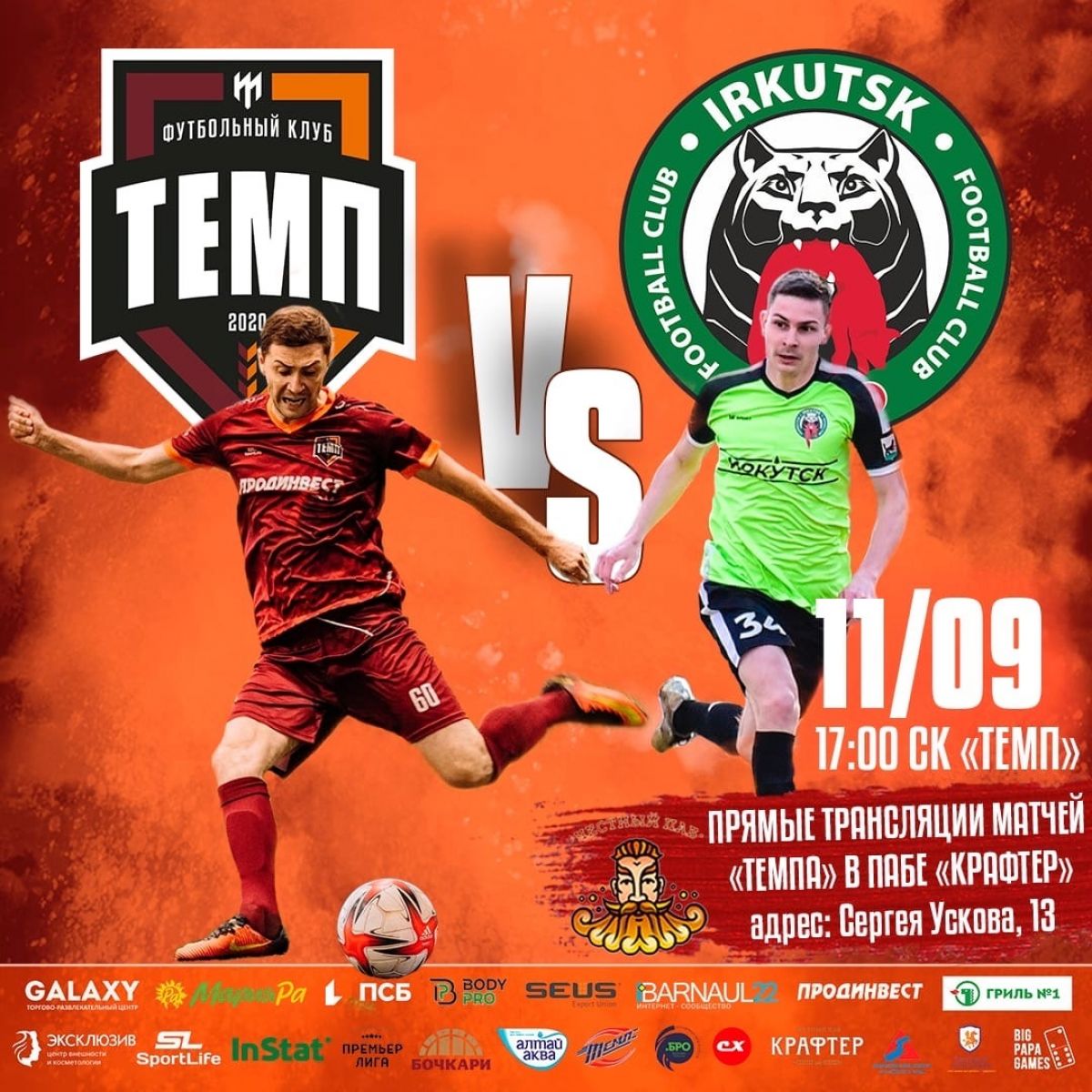 Барнаульский «Темп» в своем манеже в 17:00 принимает ФК «Иркутск». На данный момент команда из Иркутска является лидером турнирной таблицы, имея в активе 63 очка, и если «Темп» не возьмет реванш за поражение в первом круге (1:2), то именно гости станут новым чемпионом Сибири досрочно!
