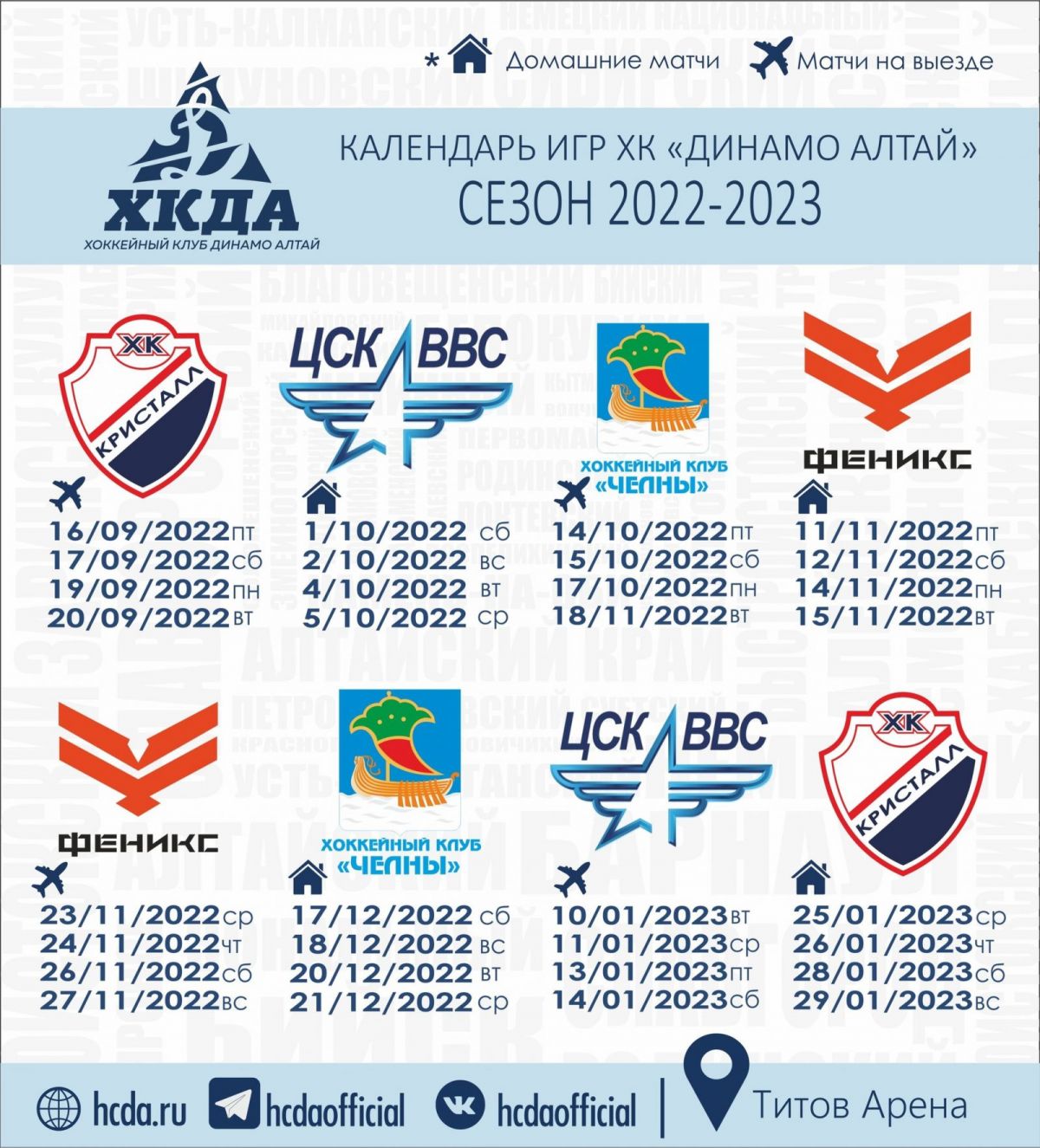Согласно ему, барнаульцы первый матч на домашней арене сыграют 1 октября - против самарского ЦСК ВВС.