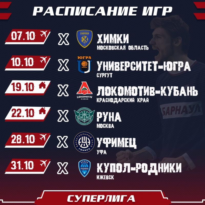 Новый сезон в Суперлиге стартует 4 октября. БК «Барнаул» 7 октября в первом туре сыграет в Химках