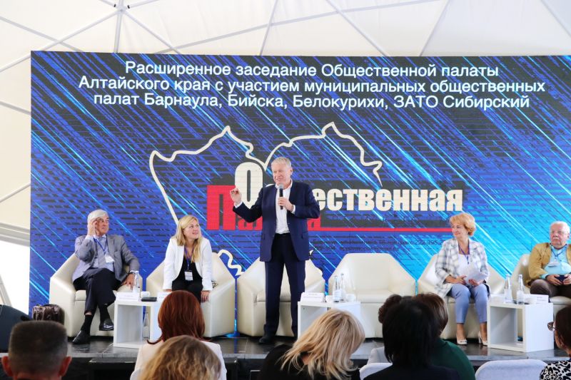 23 сентября на гребном канале Общественная палата Алтайского края провела первое совместное заседание общественных палат региона. В собрании приняли участие общественники Барнаула, Бийска, Белокурихи, ЗАТО Сибирский, главы городов и районов, молодые активисты, гости из других регионов России. Всего в работе заседания были задействованы около 120 экспертов.