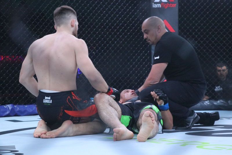 Бой за титул временного чемпиона в полулёгком весе. Амин Гасимов (Россия/Азербайджан, 7−0-0) - Адилет Нурматов (Киргизия, 8−2-0), удушающий приём в четвёртом раунде