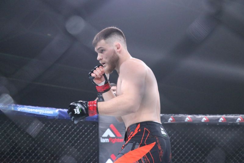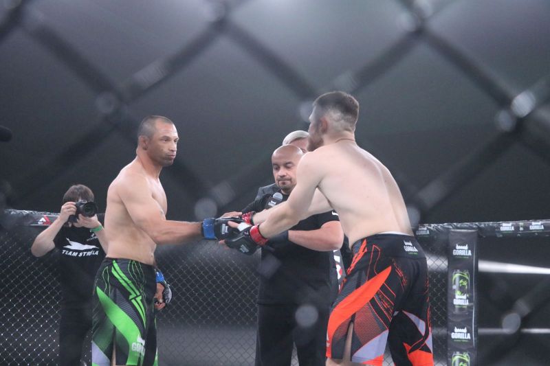 Кирилл Зимановский из команды STRELA TEAM оказался первым барнаульцем, вышедшим в октагон в этот вечер. Его соперником был дебютант лиги - Владислав Данилов из Новосибирска. И оказался он не робкого десятка. В первом раунде (они длились по пять минут) в одной из атак Владислав разбил Кириллу нос, и это была первая кровь, пролитая на турнире. Но наш земляк, имевший до этого в своем активе две победы в профессиональных турнирах, сумел перехватить преимущество и в начале третьего раунда одержал безоговорочную победу. После того, как на Данилова в партере обрушился град ударов Зимановского, рефери Максим Протасов остановил бой. Кирилл продолжает оставаться непобедимым в этом промоушне.