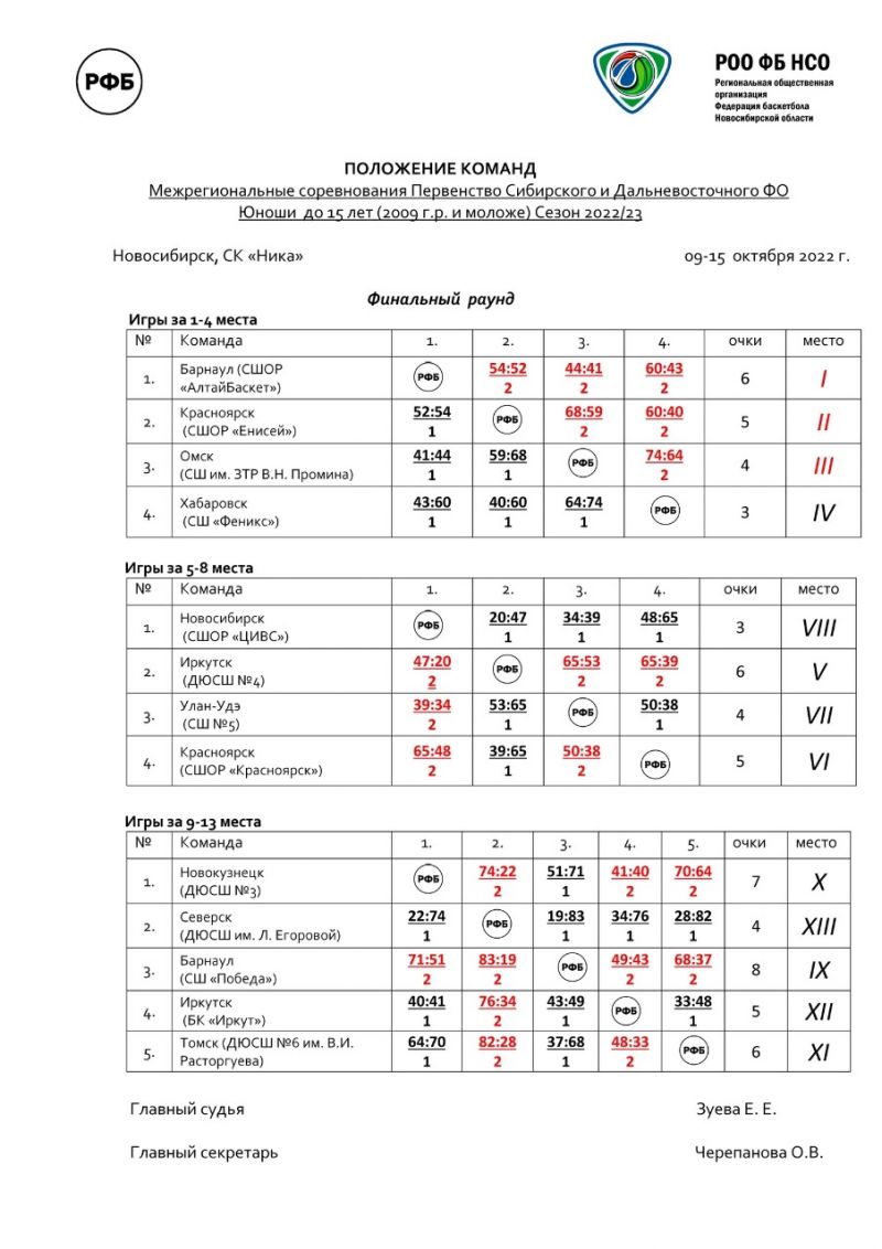 В Новосибирске 9−15 октября прошёл межрегиональный этап первенства России среди юношей 2009 года рождения (игроки до 15 лет).