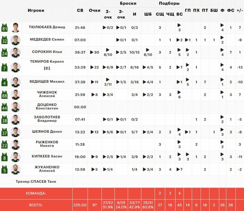 После игры центровой «Барнаула» Алимджан Федюшин внимательно изучал протокол матча.
