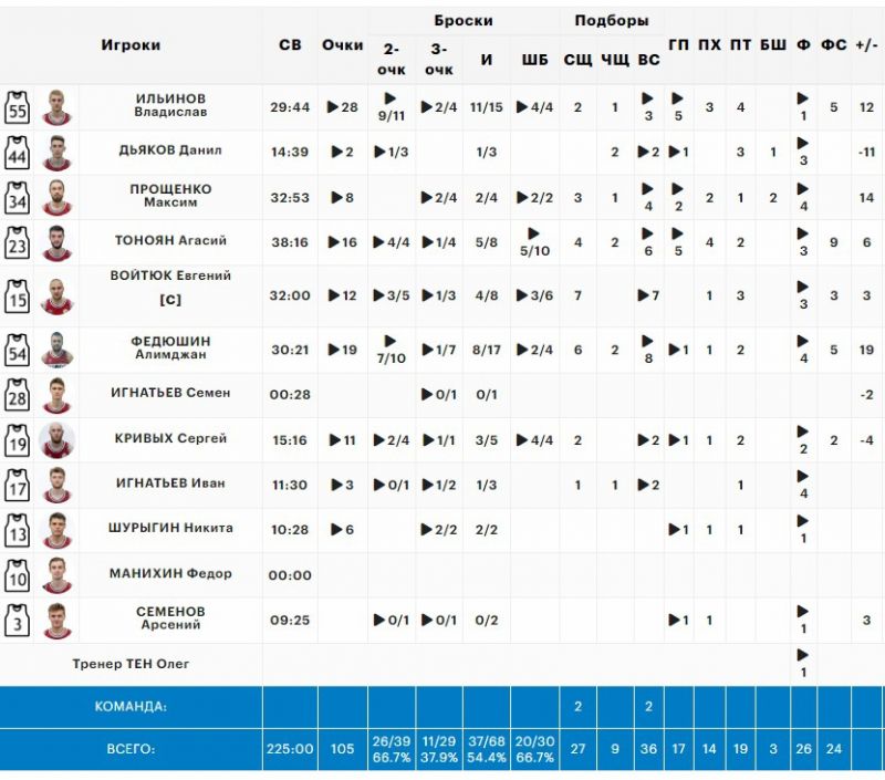 - Матч получился очень интересным. Наверное, тренер никогда на все сто процентов не бывает довольным качеством игры своей команды. Но результатом я доволен. В баскетболе игра никогда не идёт по нисходящей или восходящей прямой. Всегда есть взлёты и падения. Игроки гостей молодые, энергичные. В какой-то момент им удалось перехватить инициативу.