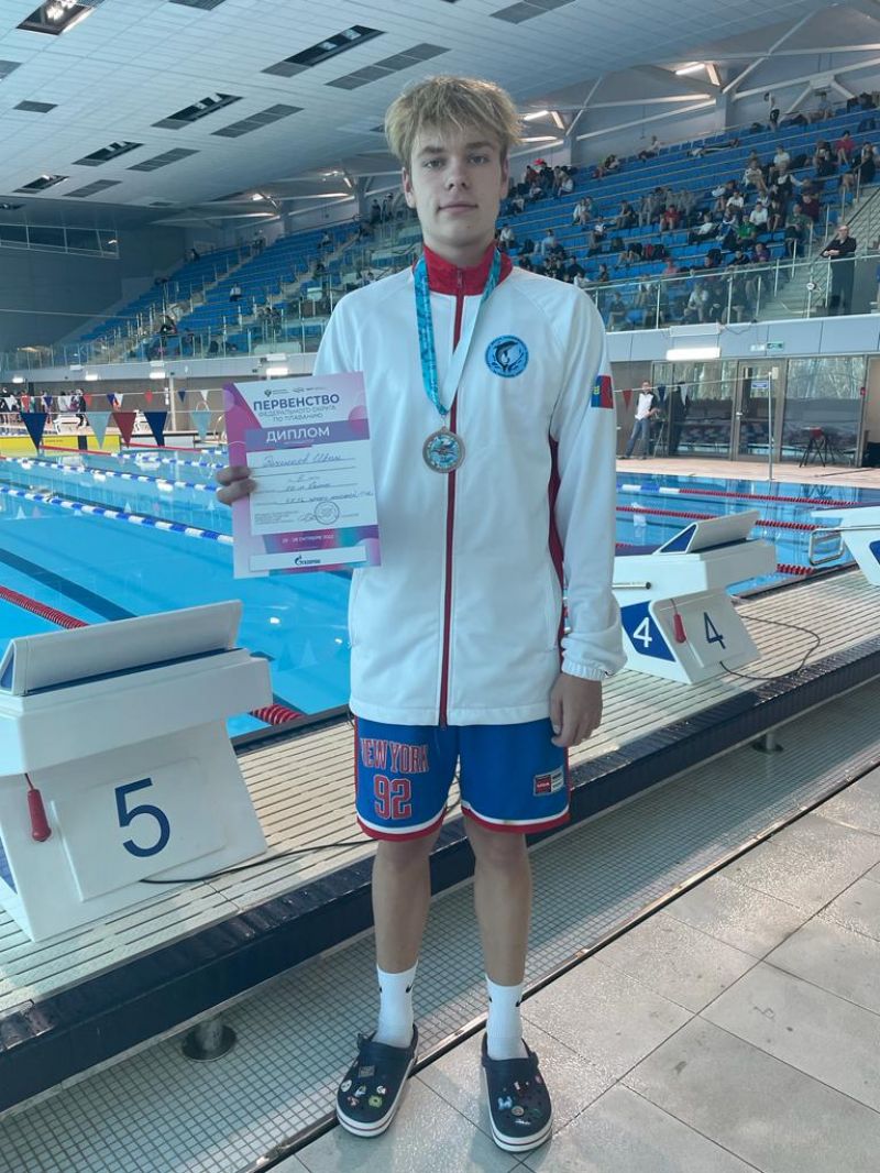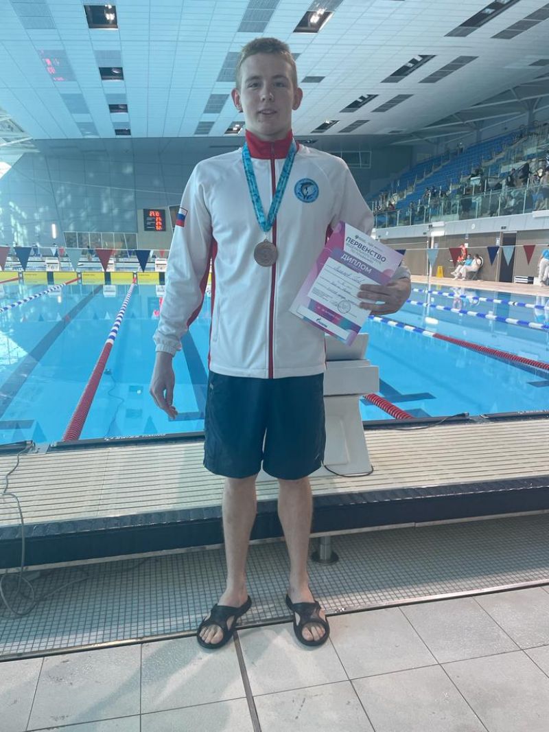 Глеб Власов победил в соревнованиях юниоров 17−18 лет в плавании на 50 метров баттерфляем.