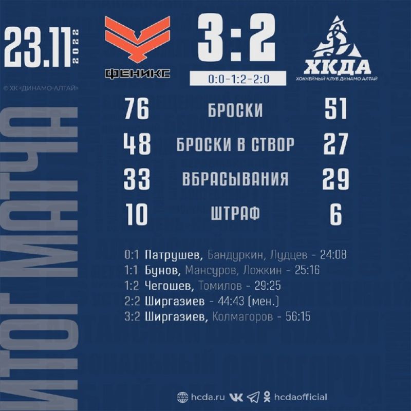 «Феникс» (Казань) - «Динамо-Алтай» (Барнаул) - 3:2 (0:0, 1:2, 2:0)