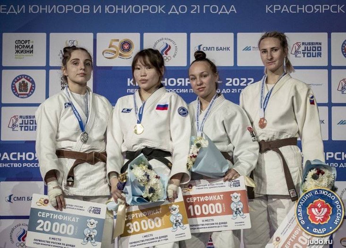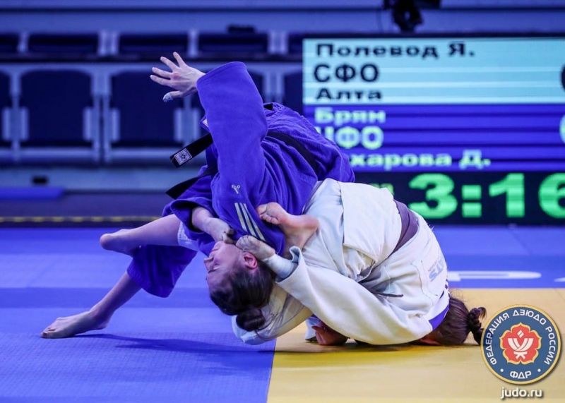 А мы поздравляем с бронзовой медалью одного из важнейших турниров сезона Яну Полевод. Третье место на пьедестале для нашей спортсменки тем более ценно, что Яне пришлось пройти через стадию утешительных поединков. В четвертом круге она в своей подгруппе уступила за выход в полуфинал Татьяне Жданкиной из Самарской области (впоследствии второй бронзовой медалистке), и затем провела еще три схватки. В итоге в матче за бронзу Полевод удушающим приемом выиграла у Дарьи Захаровой из Брянской области.