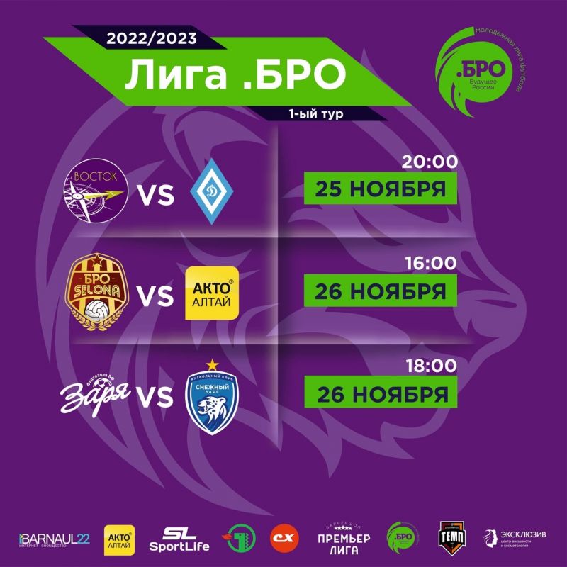 Сегодня, 25 ноября, в спортивном манеже «Темп» стартует 1-й тур шестого сезона молодежной футбольной «Лиги.БРО». Турнира, в котором молодым игрокам предоставляется шанс заявить о себе в футбольном мире.