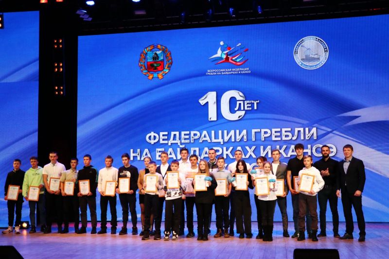 Торжественное собрание, посвящённое юбилею, прошло 3 декабря в концертном зале «Сибирь». На сцену для поздравлений и получения наград выходили виновники торжества - представители федерации, тренеры, молодые спортсмены и их родители, а также гости и партнёры алтайской гребли.