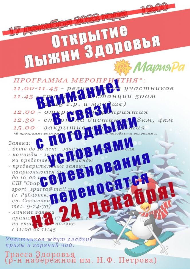 В Рубцовске открытие «Лыжни здоровья» перенесено на 24 декабря в связи с погодными условиями