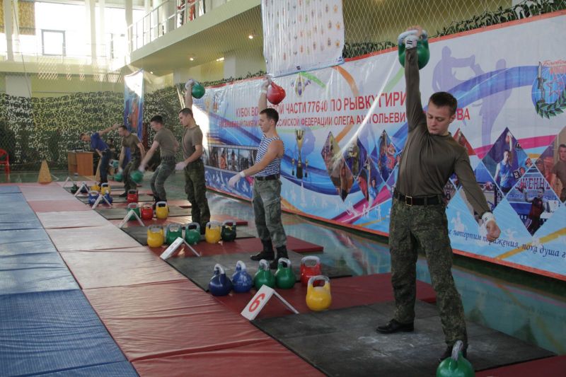 Всего на соревнованиях было разыграно 22 комплекта наград. Военнослужащие соревновались в рывке гирь 12 мин: мужчины с гирями 24 кг, 32 кг (коэффициент 1; 2), женщины - 12 кг, 16 кг (коэффициент 1; 2).