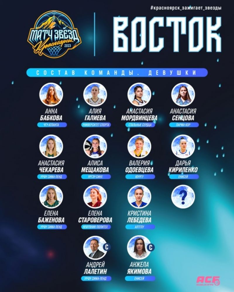 Помимо Кристины, в женской команде «Восток» на «Матче звёзд АСБ-2023» выступит ещё одна не чужая для нас спортсменка - Анастасия Чекарева, воспитанница СШОР «АлтайБаскет». Школьницей она уехала в Екатеринбург и играла в ДЮБЛ за команду УГМК-ДЮБЛ.