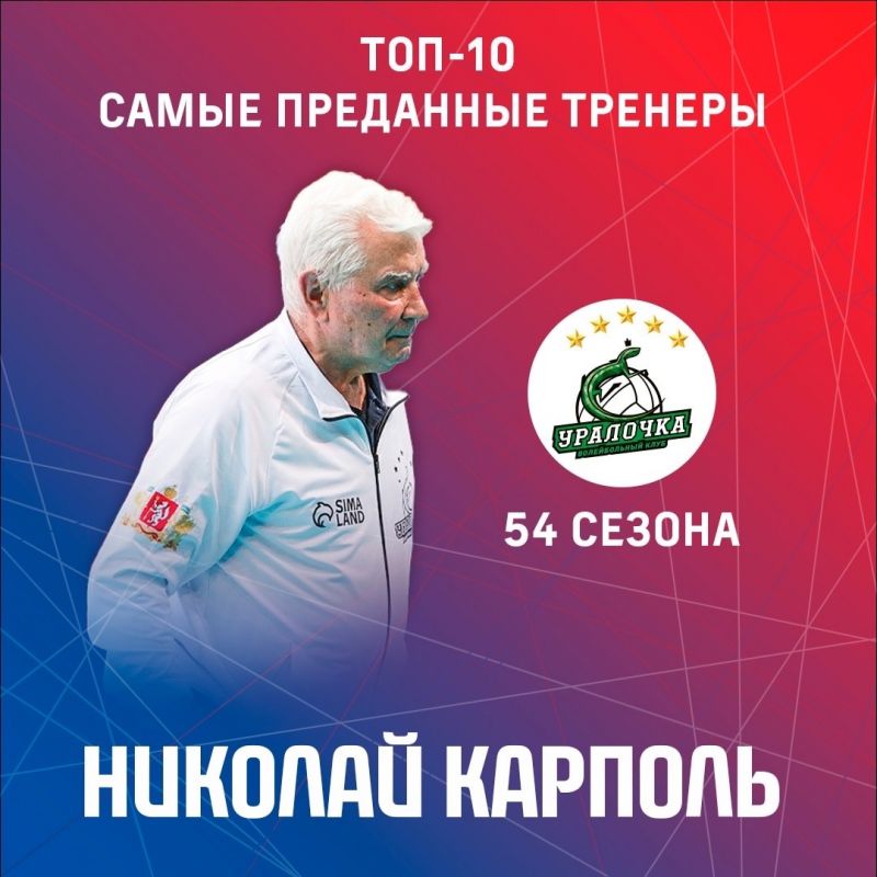 Всероссийская федерация волейбола опубликовала десятку самых преданных отечественных тренеров - тех, кто проводит большую часть карьеры у руля одного и того же клуба.