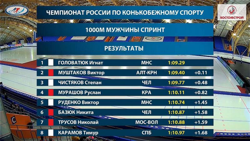 Чемпионат России по конькобежным многоборьям проходит в Иркутске. 28 января состоялся первый из двух дней соревнований.