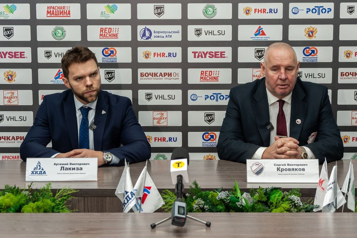 Пресс-конференция главных тренеров после второго матча серии между хоккеистами «Динамо-Алтай» и «Кристалла»