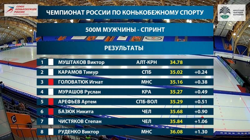 Соревнования по конькобежным многоборьям - спринтерскому и классическому - проходили в Иркутске 28−29 января. В спринтерском многоборье победитель определяется по сумме выступлений на двух дистанциях - 500 и 1000 метров. Их спортсмены бегут дважды. То есть, в зачёт идут четыре старта.