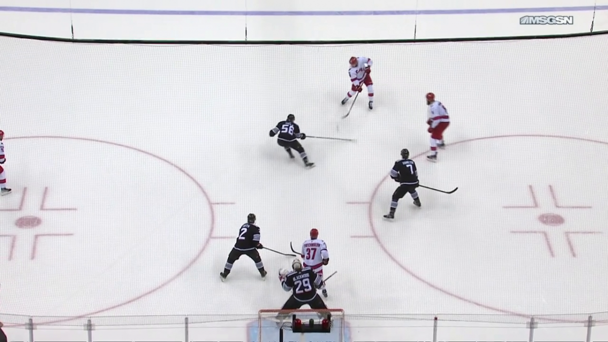 Овертайм игры с «Лос-Анджелесом». Свечников только что отработал на своем пятаке, подобрав шайбу, и запустил атаку длинным пасом. Вот он уже на входе в зону, ногами ушёл от Дрю Даути, заработал удаление и прежде чем упасть, чуть не отдал голевую на Ахо. В следующей смене Андрей промаячил перед вратарем «Кингс», и его команда быстро реализовала большинство.