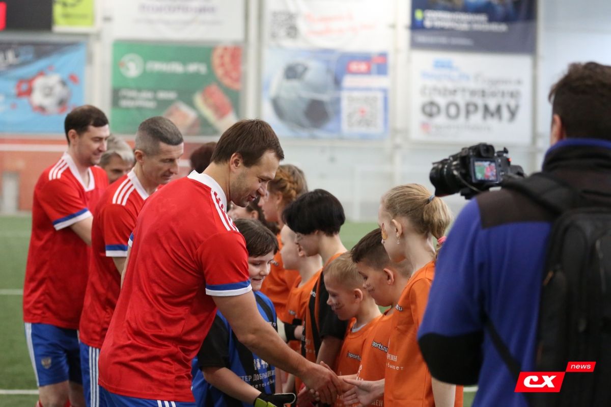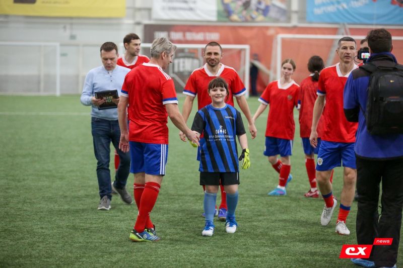 Поддержать ребят приехали почётные гости - председатель попечительского совета благотворительного фонда «Ветер добрых перемен» Денис Игнатов и российские футболисты Евгений Алдонин, Дмитрий Сычёв и Алексей Смертин.