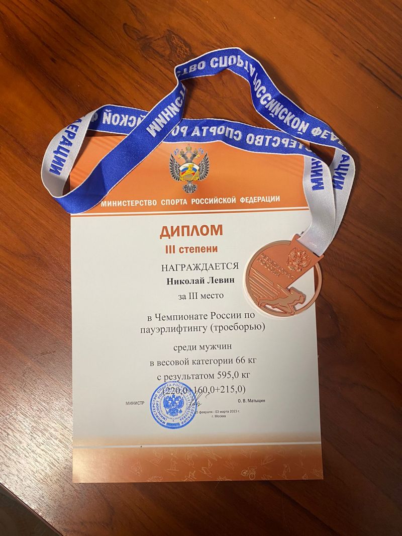 Николай Левин, которому в этом году исполнится 22 года, впервые выступал на взрослом чемпионате России. Это не помешало ему навязать борьбу более опытным соперникам и подняться на пьедестал почета. Бронзу в весовой категории до 66 кг бийчанину принёс суммарный вес 595 кг: приседание - 220 кг, жим - 160 кг, тяга - 215 кг. Этот результат позволил Николаю выполнить норматив мастера спорта России.