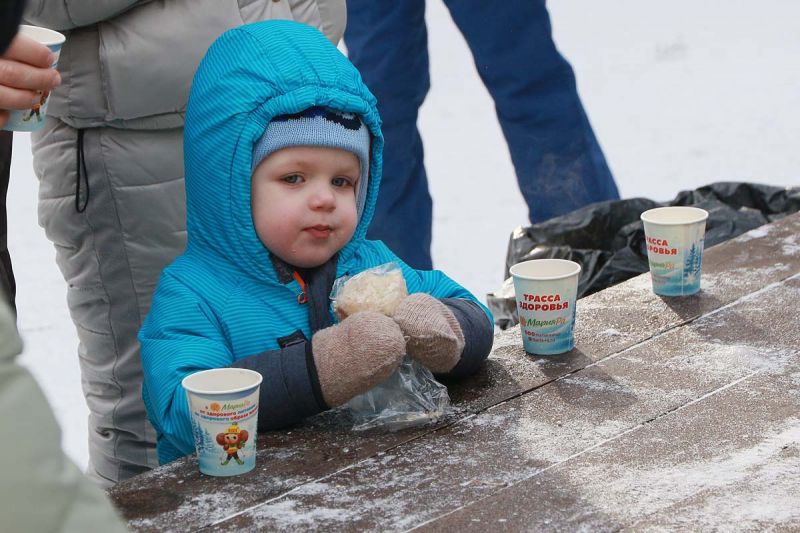 Пока марафонцы покоряли дистанцию, все остальные гости праздника весело проводили время на стартовой площадке, участвуя в самых разных активностях - конкурсах, играх и эстафетах. Охотно участвовали в беспроигрышной лотерее от Danone и выигрывали вкусную молочную продукцию. Компания «Киприно» проверяла мужчин на выносливость: самые крепкие состязались в приседаниях с большой головкой сыра в вытянутых руках. Для ребятишек приготовили множество увлекательных подвижных игр. Особенно маленькие гости праздника оценили сказочное представление «Физкультура побеждает все!» и симпатичных героев в ярких костюмах - Зайчика, Мишку, Чебурашку, которые научили вредную Бабу Ягу любить спорт и здоровый образ жизни. И дети, и родители перетягивали канат, танцевали вместе со сказочными героями, отгадывали загадки и получали множество вкусных подарков. Самым ловким и спортивным ребятам, которые участвовали в эстафетах, компания «Мария-Ра» подарила наборы лыжных палочек с символикой компании.