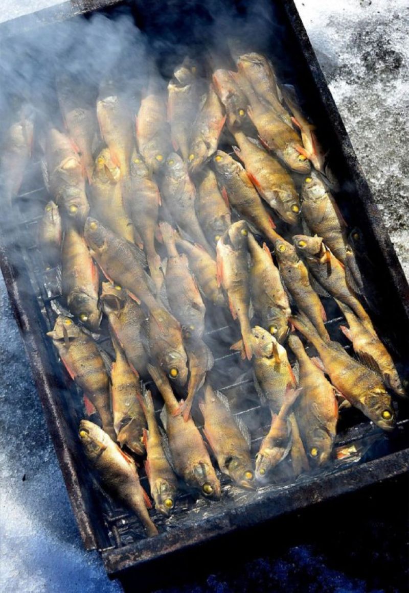На этот раз рыболовов было меньше, а рыба не такая активная. Но главное - традиция живёт! В Айском сельсовете Алтайского района вкладывают в мероприятие душу. После первого тура, длившегося 2,5 часа, всех участников напоили чаем со сладостями, а пока рыболовы ещё два с половиной часа пытали удачу на льду во втором туре, организаторы закоптили улов первого тура, чтобы накормить спортсменов аппетитными окуньками.
