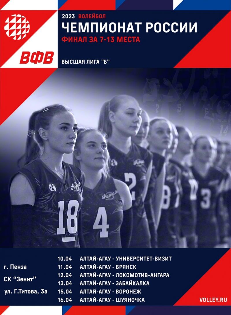В Пензе 10−16 апреля состоятся матчи за 7−13 места в чемпионате России по волейболу среди женских команд Высшей лиги «Б». Турнир пройдёт в один круг.
