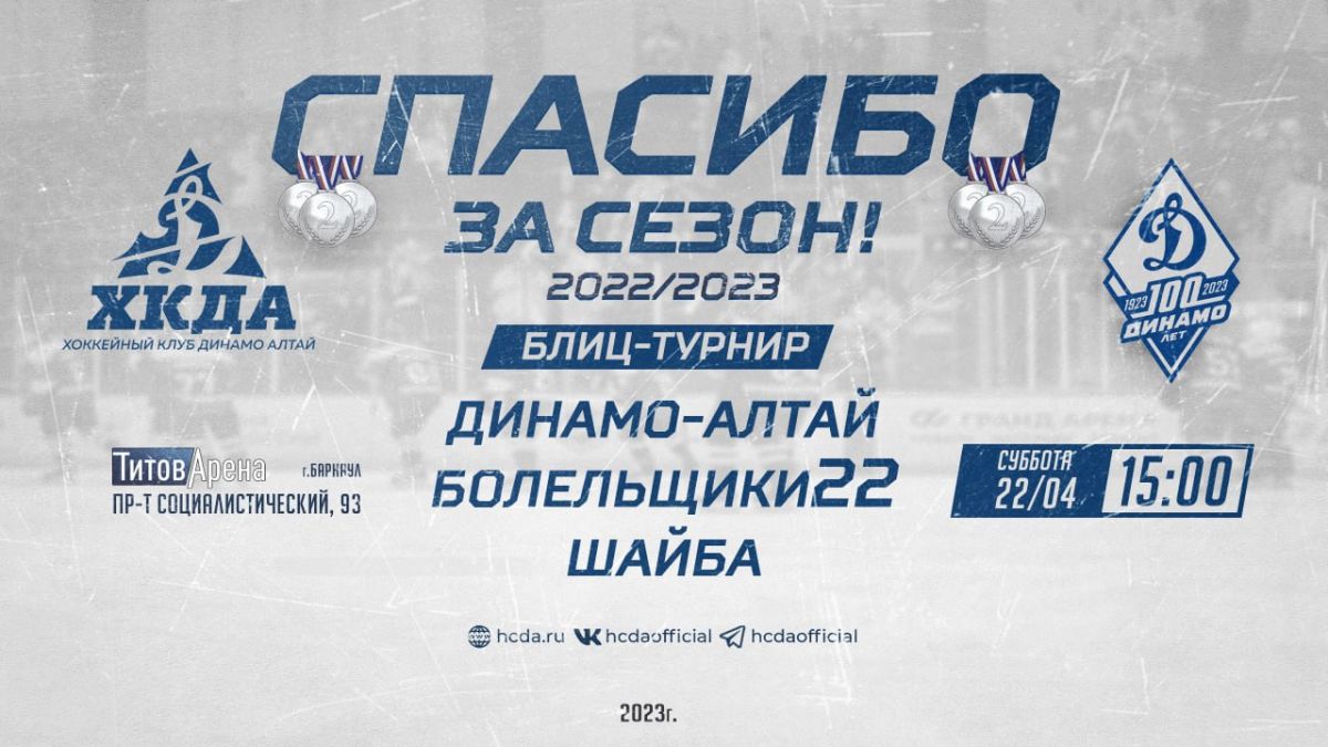 Официальный сайт ХК «Динамо-Алтай» разместил обращение к болельщикам с приглашением принять участие в празднике официального закрытия хоккейного сезона 2022/2023.