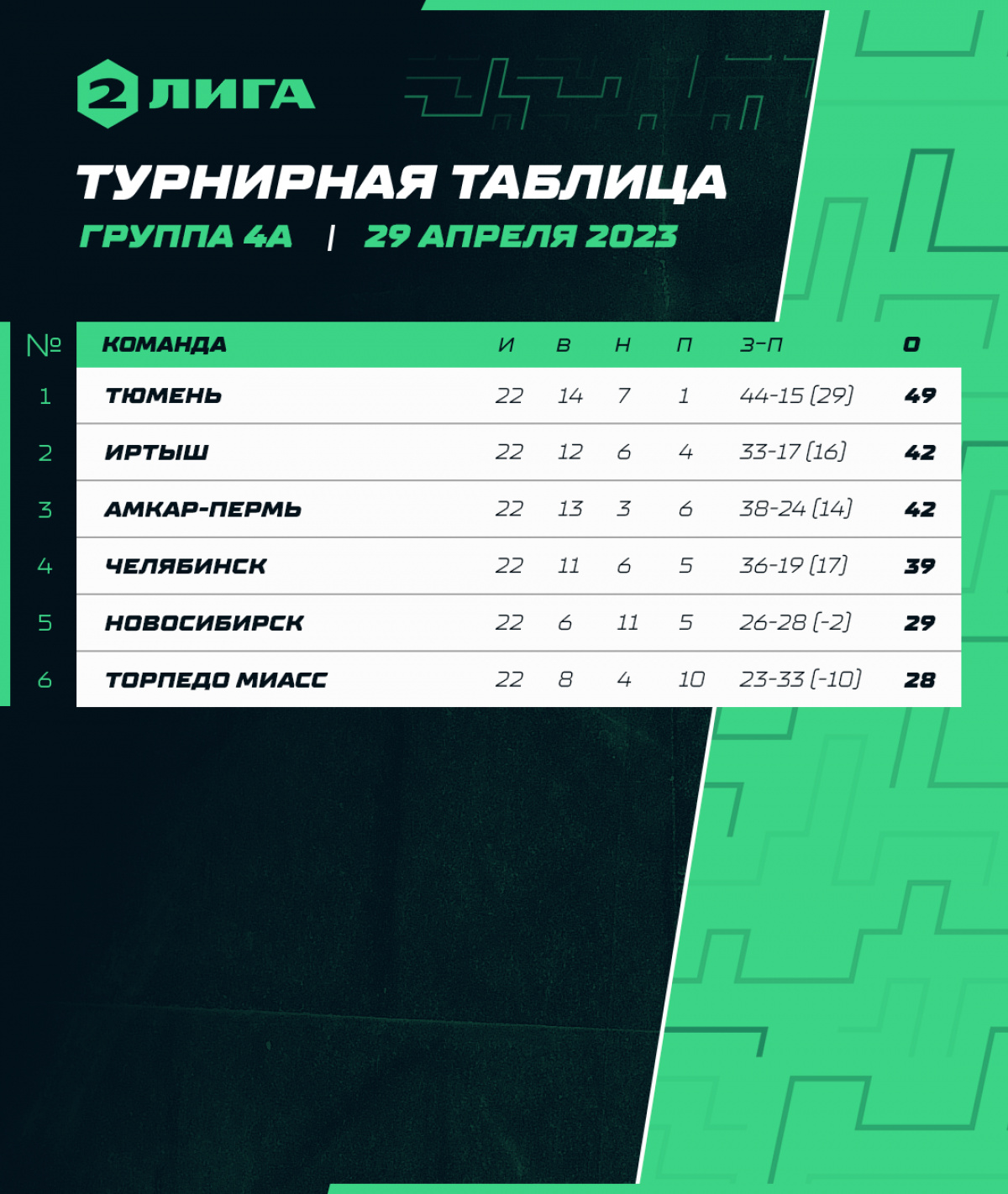 «Динамо» осталось на седьмой строчке после того, как «Торпедо Миасс» одержало волевую победу в Ижевске над «Зенитом» (2:1), а «Новосибирск» удержал нулевую ничью в гостевом матче с «Челябинском». Команде Олега Яковлева предстоит сыграть в подгруппе «Б» утешительный турнир за 7−12 места.