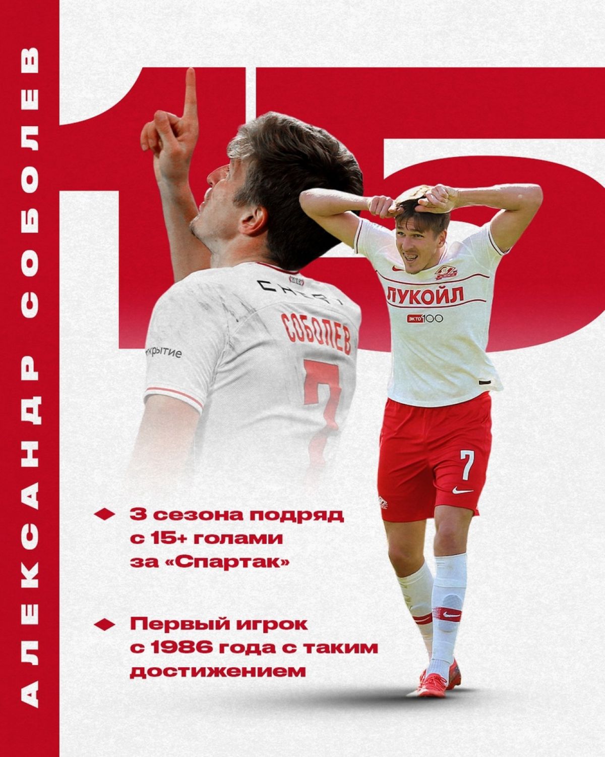 Спартаковец Александр Соболев в гостевом матче РПЛ с «Химками» забил 15-й мяч в сезоне и повторил клубный рекорд 36-летней давности