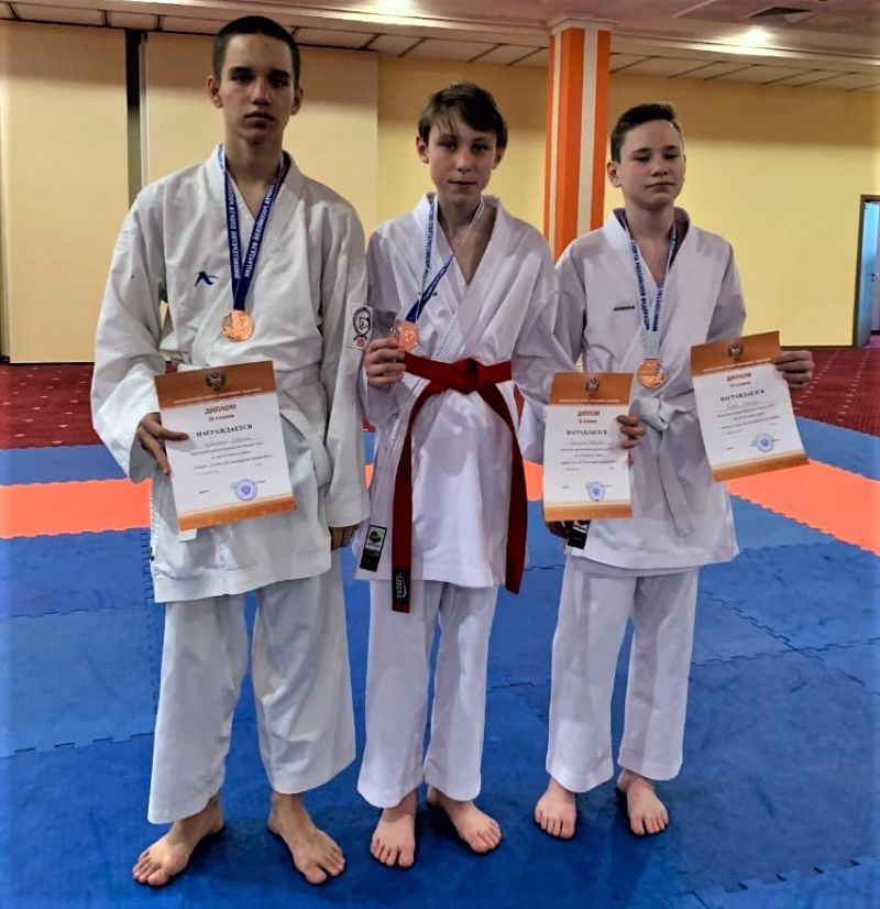 Кроме этого, юноши и девушки из Алтайского края поднялись на третью ступень пьедестала по итогам командного кумитэ. У девушек эти соревнования проходили в рамках фестиваля. Бронзовыми призёрами в составе юношеской команды стали Матвей Сальников, Евгений Ляшенко и Данил Головко, в соревнованиях девушек бронзу завоевали Полина Нятина и Арина Плисова.
