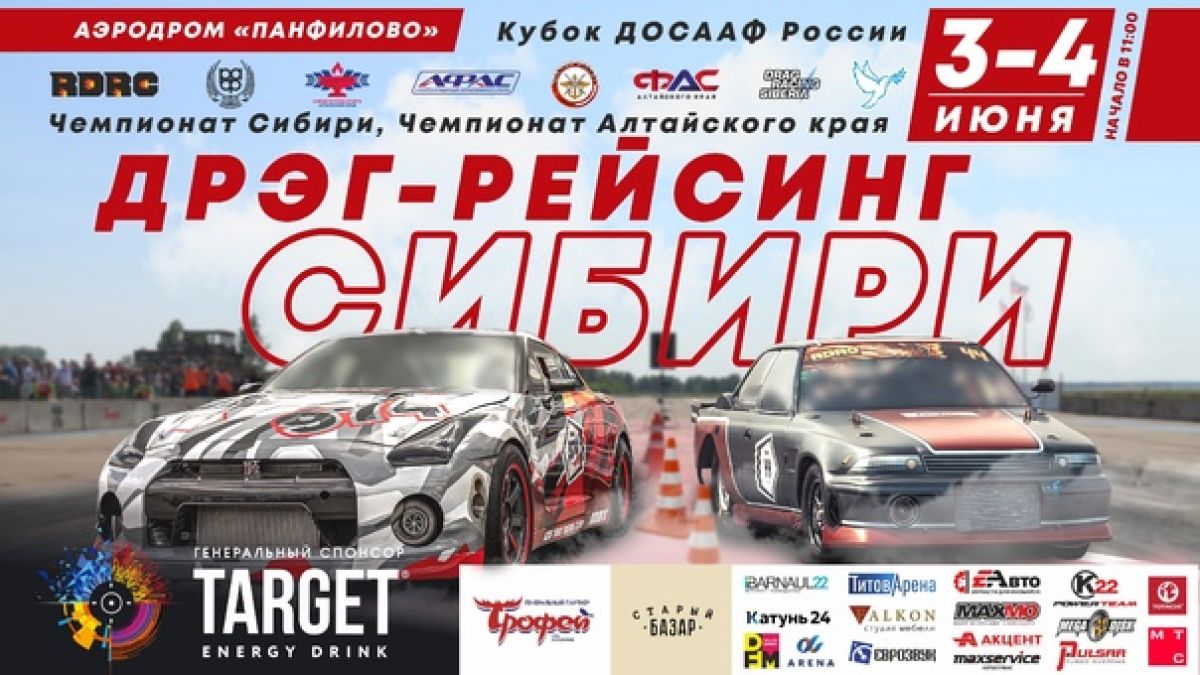 Первый из них состоится на аэродроме Панфилово в селе Новороманово Калманского района 3−4 июня. Будут разыграны призы чемпионата Сибири и Алтайского края, а также Кубка ДОСААФ России по дрэг-рейсингу.