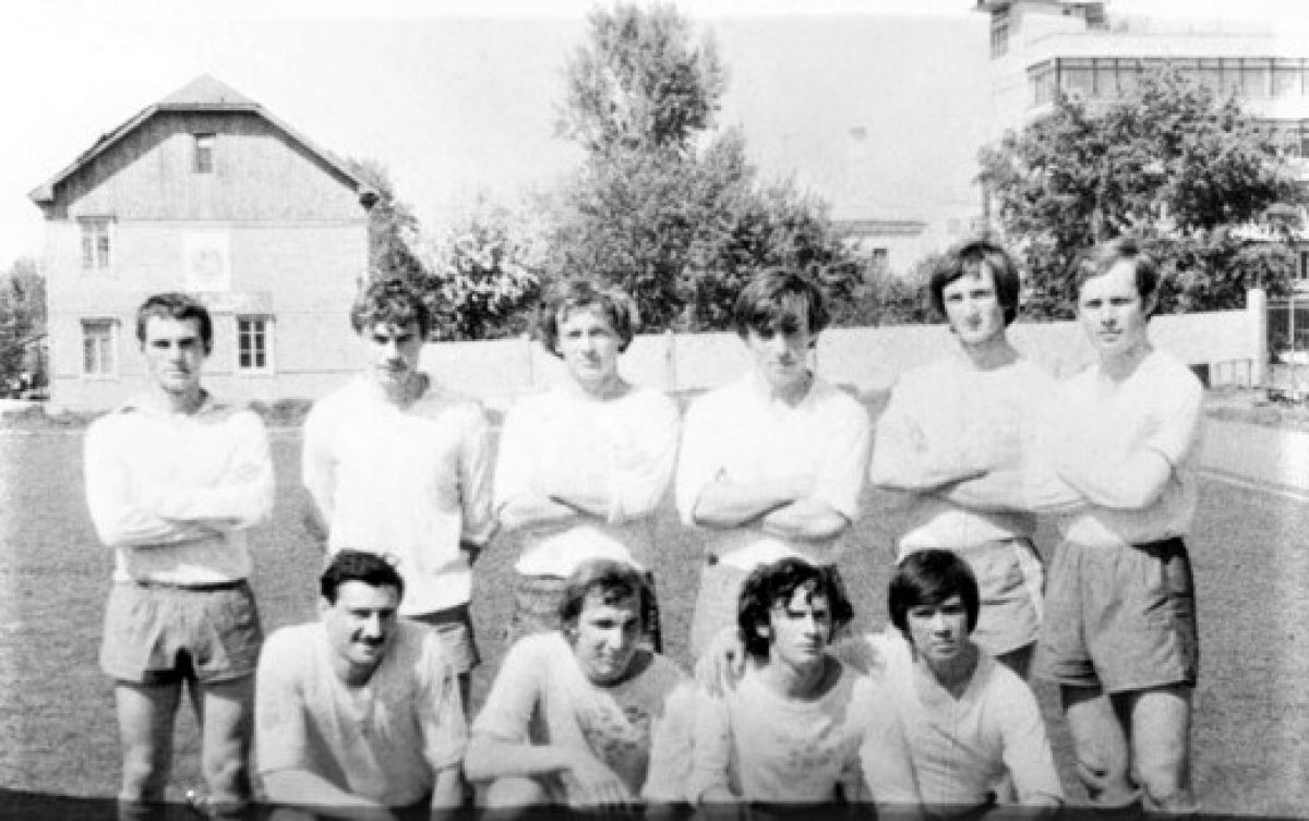Вспоминаю первую игру, которая состоялась 2 мая 1975 года. Стадион «Рубин», пос. Южный. Блицтурнир. Поле еще не просохло от зимы. Грязь. В этот раз мы проиграли со счётом 0:1 какой-то заводской команде Барнаула. Но начало было положено. Потом на этом же стадионе выиграли со счётом 2:1 у завода агрегатов. Причем Володя Андрюков (наш капитан команды) первый гол забил непосредственно с углового. Как говорят, от флажка. Второй мы забили с пенальти. После игры сфотографировались.