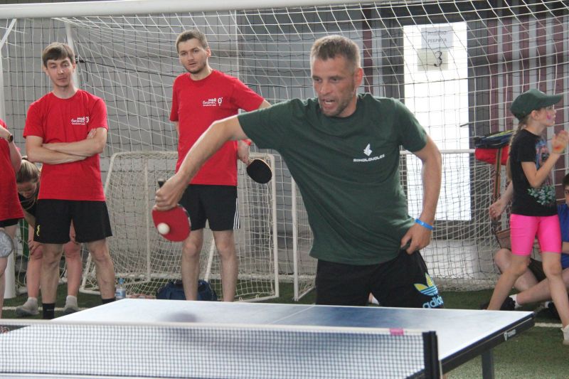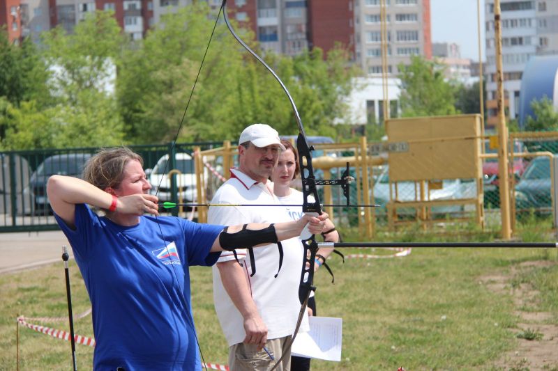 После командной эстафеты (очень, кстати, оригинальной), участники разошлись по своим площадкам и концентрация людей уменьшилась: шахматисты ушли в конференц-зал, волейбол, стритбол и стрельба из лука проходили на улице, остальным видам повезло больше: они остались в манеже «Темпа», спасаясь от невероятной жары, которая стояла в этот день.