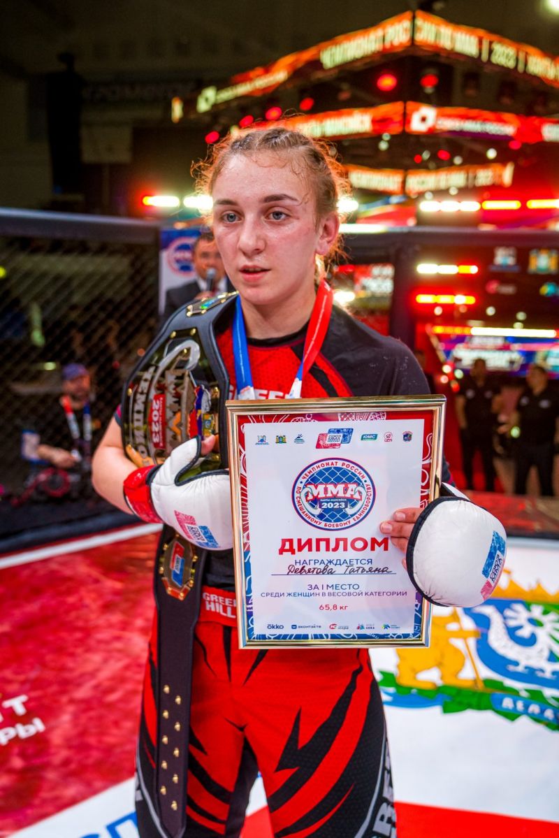 В женской части соревнований Алтайский край представляла единственная спортсменка - победительница мартовского чемпионата Сибири 18-летняя Татьяна Девятова из клуба смешанных единоборств Top Team Siberia (тренер Иван Соловьев), выступающая в весовой категории до 65,8 кг (полулегкий вес).