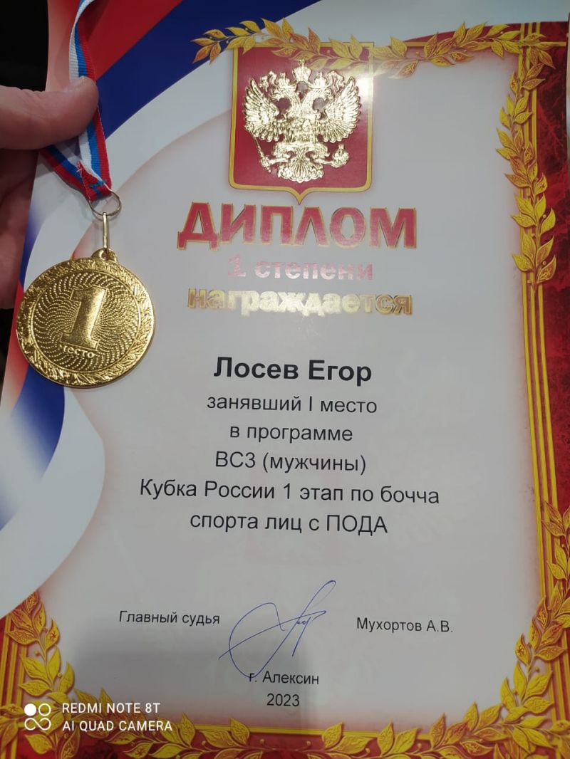 Егор Лосев завоевал золотую медаль Кубка России по бочча (спорт лиц с ПОДА)