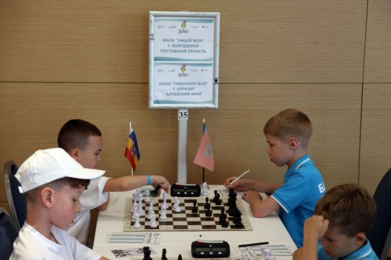 «Дебют» - ежегодное итоговое мероприятие проекта «Шахматы в школах». В этом году в финале выступили команды из 18 регионов. Сборная барнаульской гимназии № 42 (Илья Корзников, Матвей Фролов, Александр Тетерин, Алина Старыгина) имела шестой стартовый номер и заняла итоговое седьмое место. Наши юные шахматисты выиграли матчевые встречи у сверстников из Ростовской области (3:1), Курганской области (3:1) и Забайкальского края (3:1), разошлись миром с представителями Воронежской и Брянской областей, проиграли командам из Удмуртии (1:3) и Хабаровского края (0:4). На третьей доске Александр Тетерин показал второй результат среди всех участников, набрав 6 очков из 7 возможных.