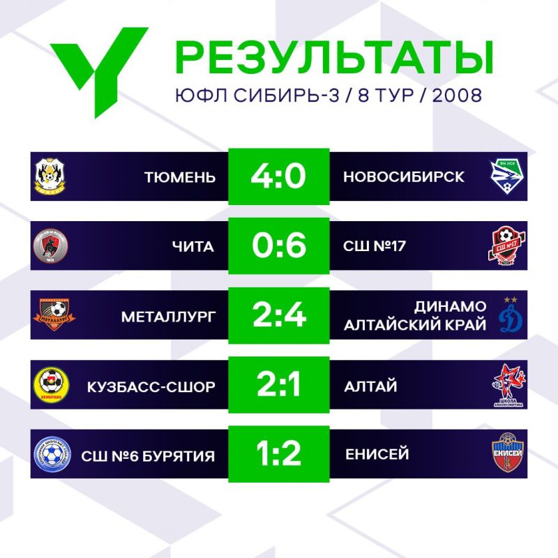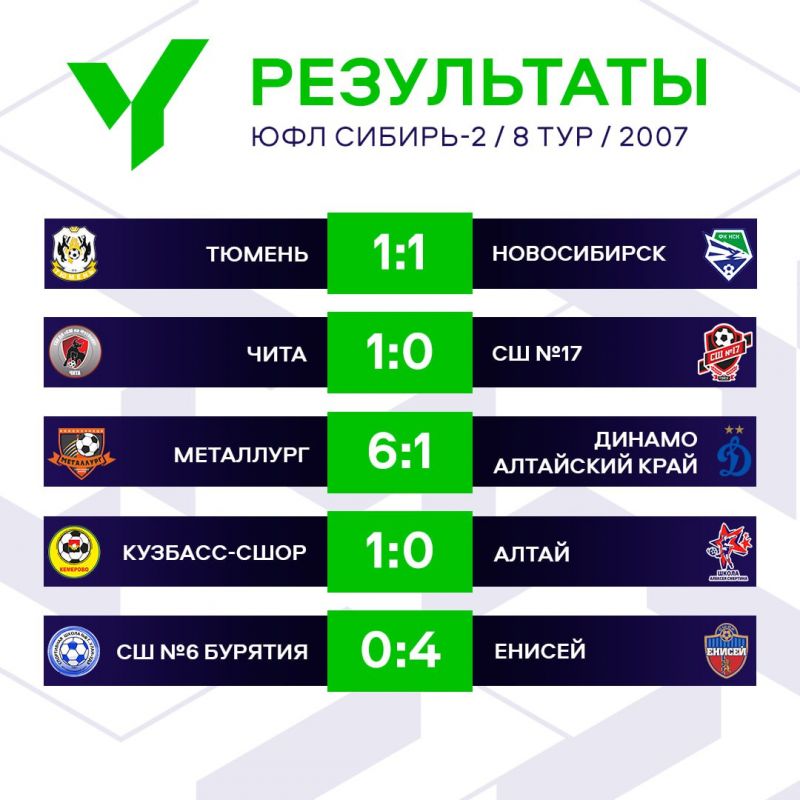 21 июня состоялись матчи 8-го тура Юношеской футбольной лиги (ЮФЛ) в Сибирском федеральном округе.