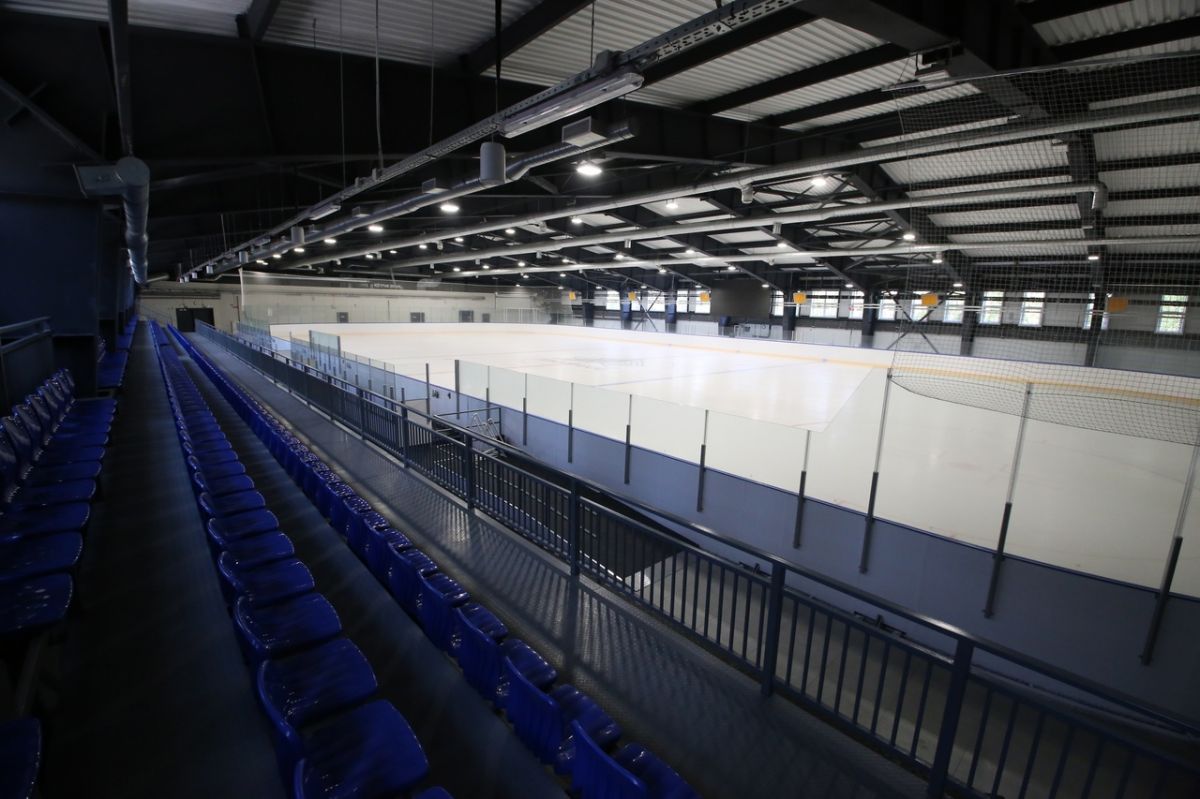 В здании ледового дворца, который находится рядом со стадионом «Прогресс», находятся: крытый каток площадью 4,5 тысячи квадратных метров, тренажерный зал, места для занятий фитнесом и хореографией.