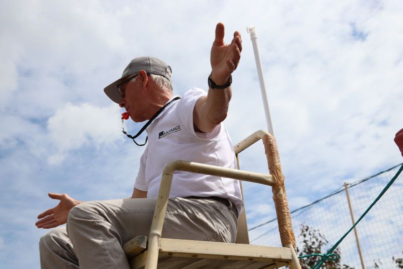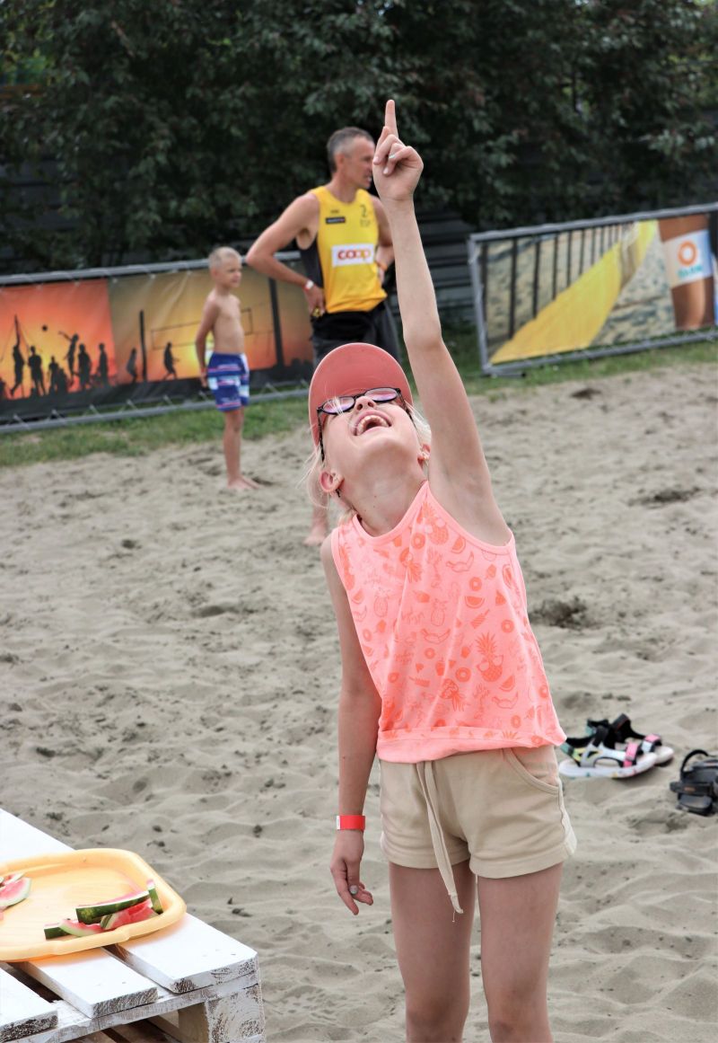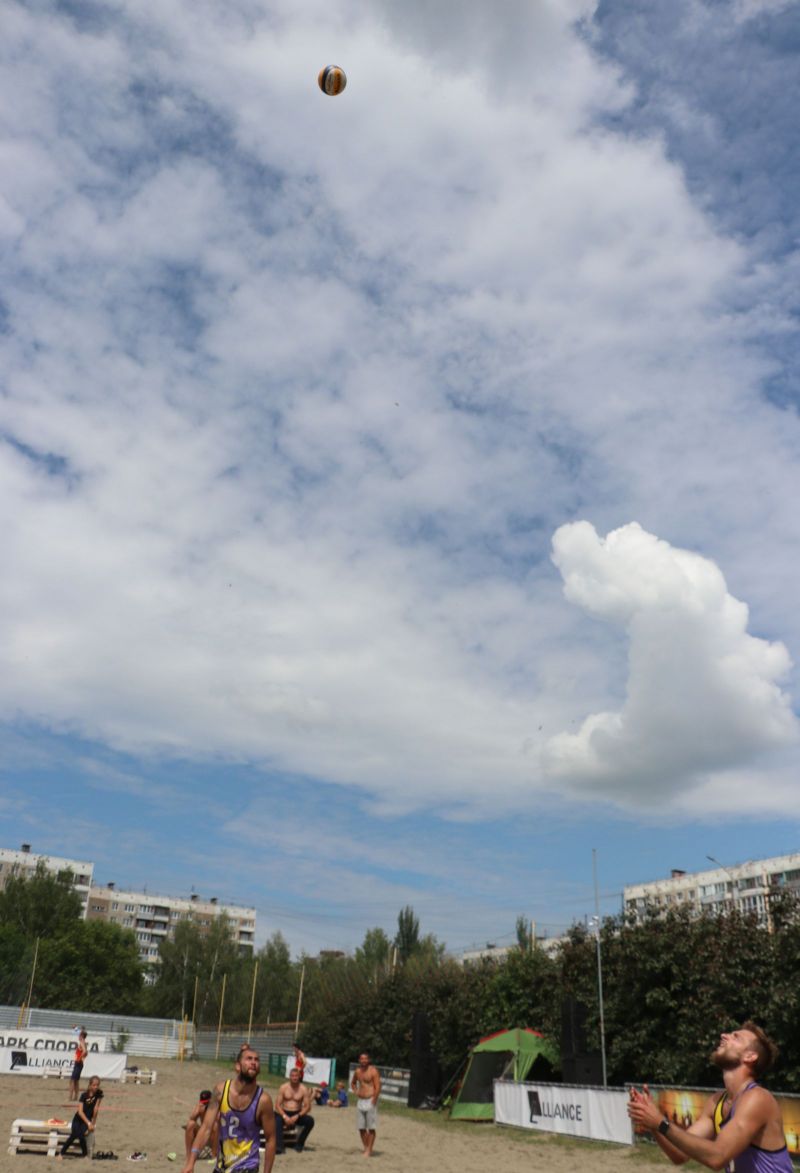 «Друзья, это пляжный волейбол, ничего не стесняйтесь!», - призывал Олег и показывал как принято у болельщиков-пляжников движением рук в такт с музыкой реагировать на такие элементы волейбола, как эйс, блок или «пушка». - Пу-пу в детском саду/ в детском саду/ в детском саду/ пу-пу-пу! Устоять под напором и обаянием ведущего, а он трудился под солнцем будто заводной, было сложно. Тем более, что и волейболисты давали повод за поводом помахать руками. На площадке то и дело происходили чудесные спасения, отмеченные волейбольным интеллектом комбинации и пушечные удары.
