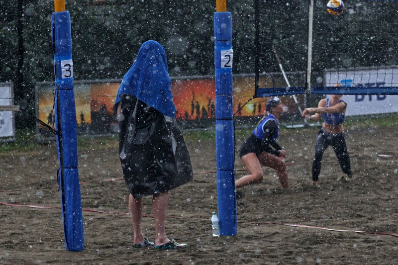На протяжении трех дней погода испытывала участниц и зрителей на прочность: знойное солнце накаляло песок до предела, либо ливень поливал корты. Но матчи должны проходить в любую погоду, и для волейболисток-пляжниц капризы небесной канцелярии - не более чем досадное дополнение к азартному соревнованию на песке, которые остается горячим по определению от эмоций и накала борьбы.